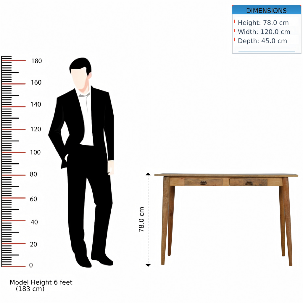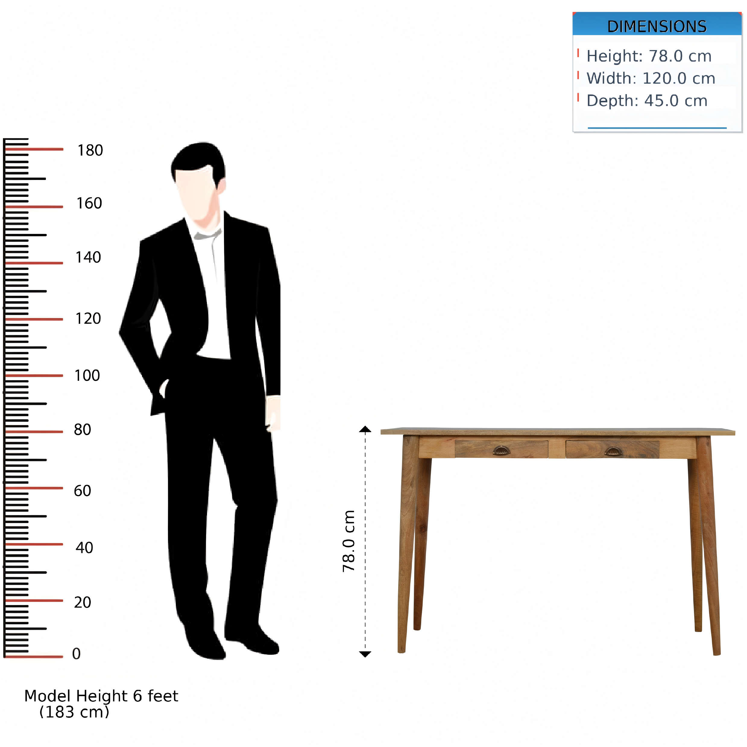 Solid Wood Writing Desk, 2 Drawer Nordic Beige