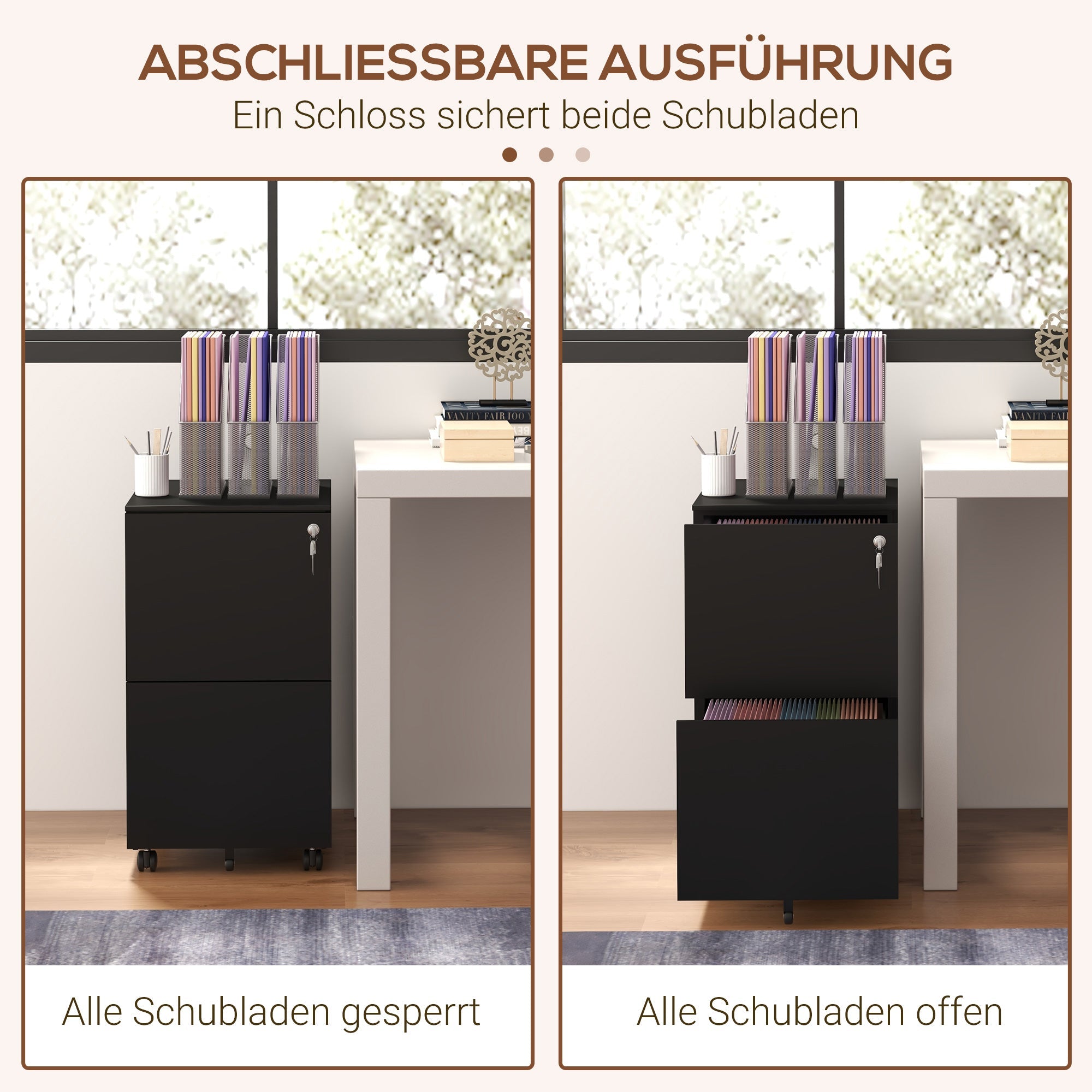 Vinsetto Filing Cabinet with 2 Lockable Drawers, Rolling, Steel, Black