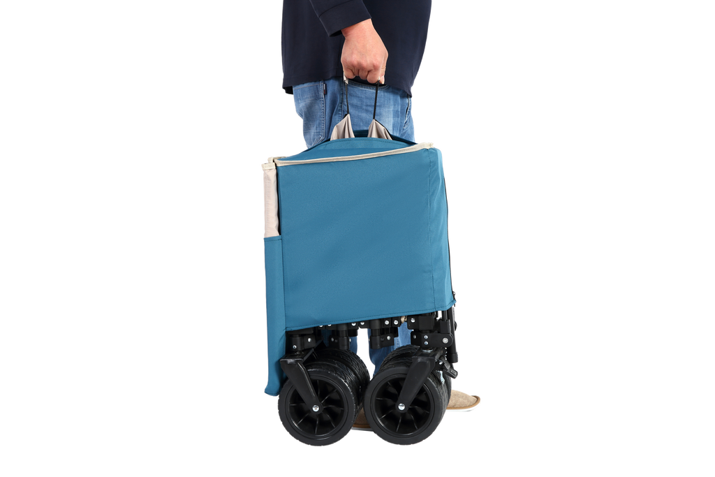 With a much deeper and enlarged storage space of 53.54" L x 21.26" W x 23.62" H, this wagon offers a roomy internal volume and a surprising loading capacity that's more than three times that of other wagons. Two mesh cup holders keep your beverages safe and sound.