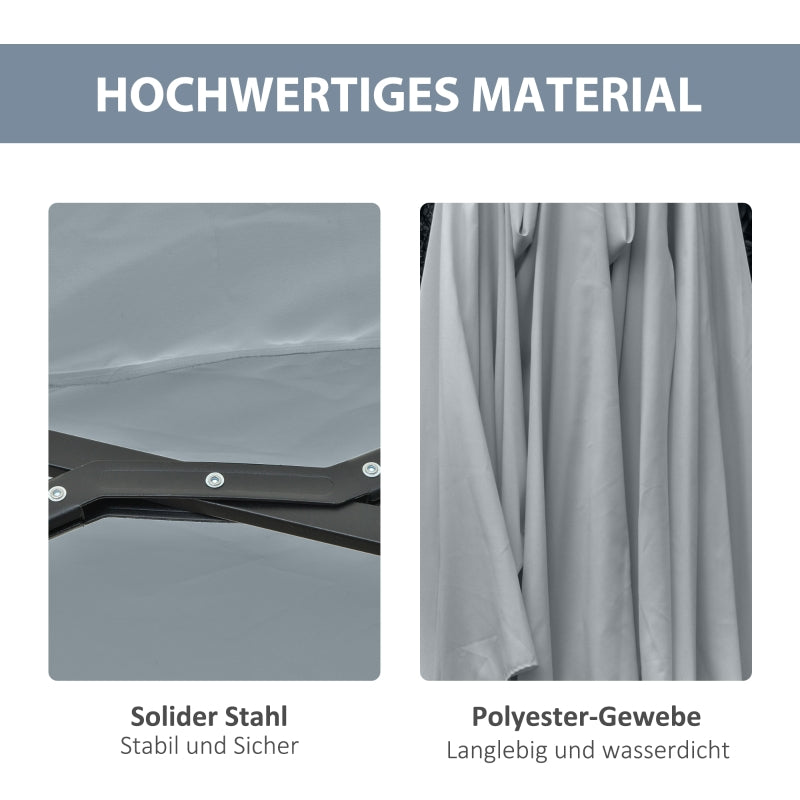 High-quality materials: A sturdy steel frame with 12 ribs connecting the pole ensures this large parasol remains stable all day long. Durable polyester protects against water when used outdoors.
