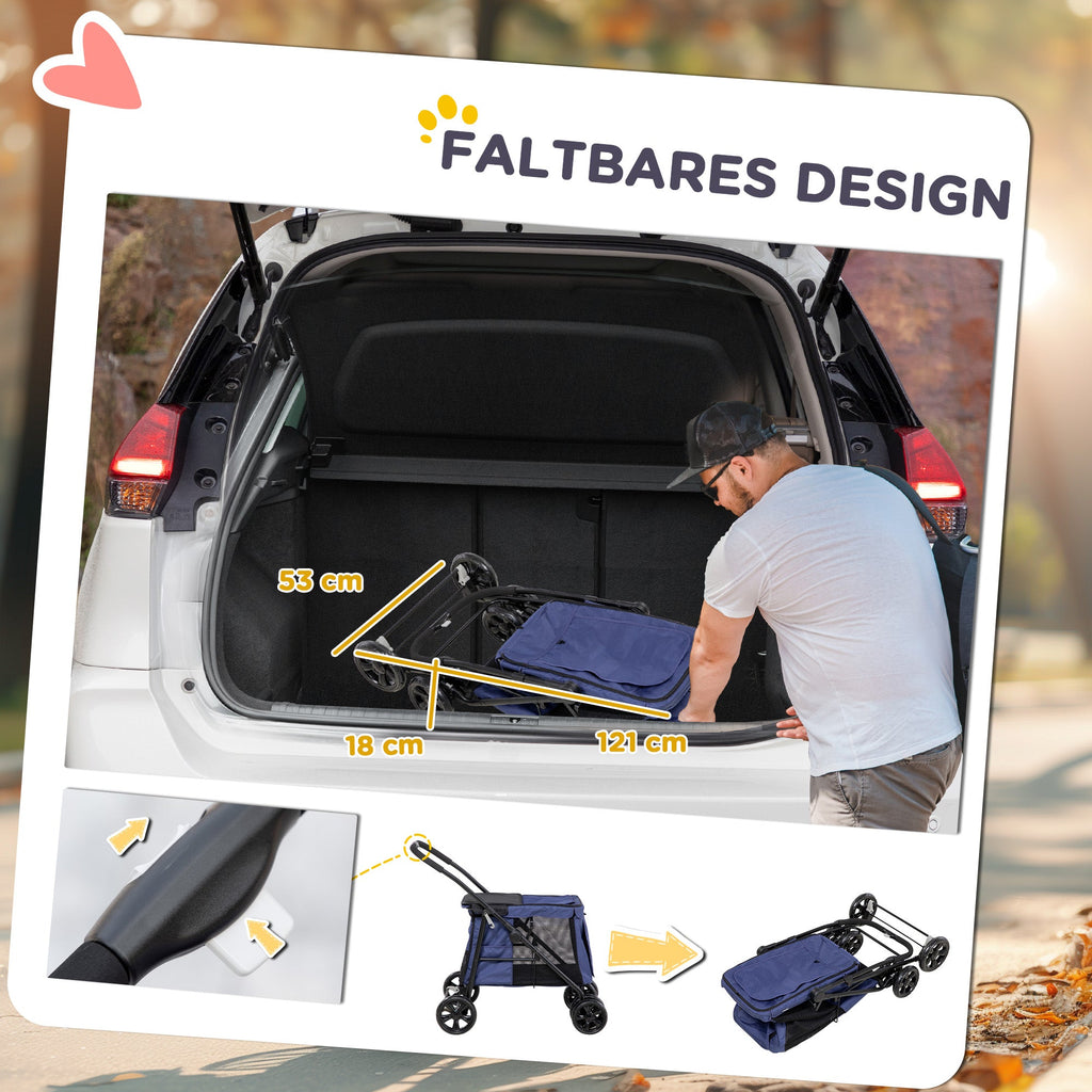 Dog Stroller Foldable Buggy Cushion Mesh up to 20 kg Oxford Fabric Blue
