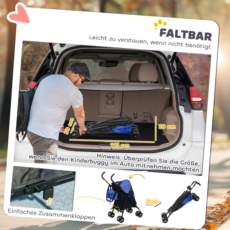 Dog Stroller, Foldable Buggy for Dogs & Cats, 4 kg, Dark Blue