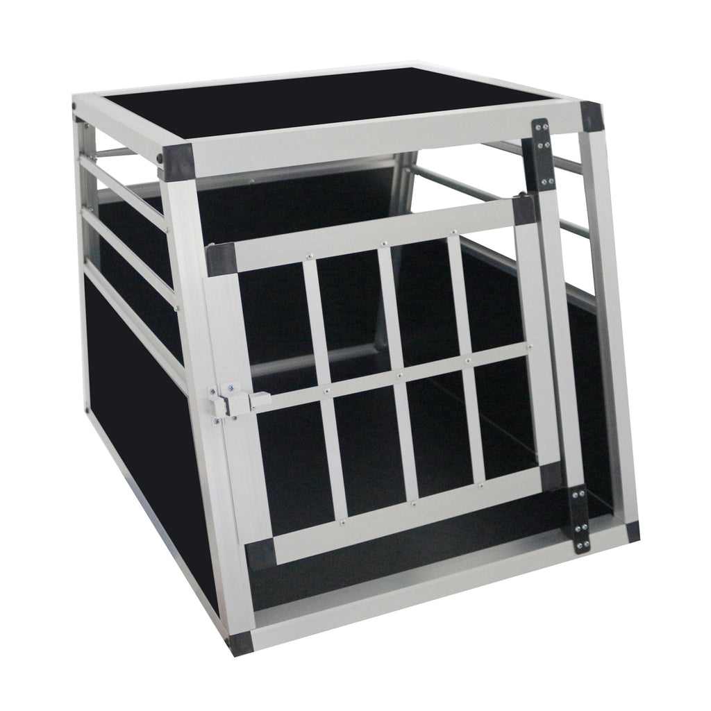 Aluminum Dog Crate: Travel Car Crate - 54 x 69 x 50 cm, Black/Silver