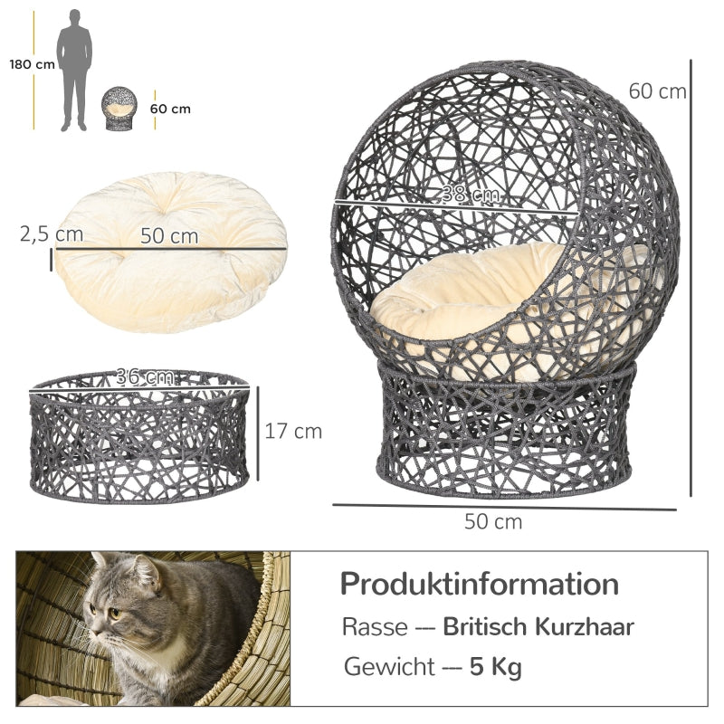 Raised Cat Bed: The raised design allows air to circulate beneath the cat bed, helping your four-legged friend regulate their temperature so they do not get too hot or too cold when curling up to sleep. Overall dimensions: 50 cm (L) x 50 cm (W) x 60 cm (H).