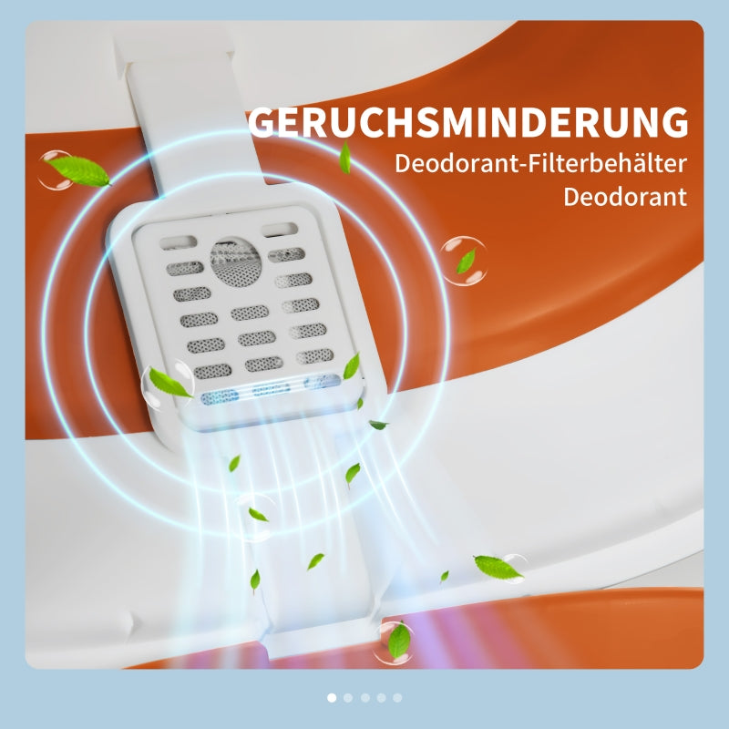 Cat Litter Box, with Lid and Scoop, White/Orange