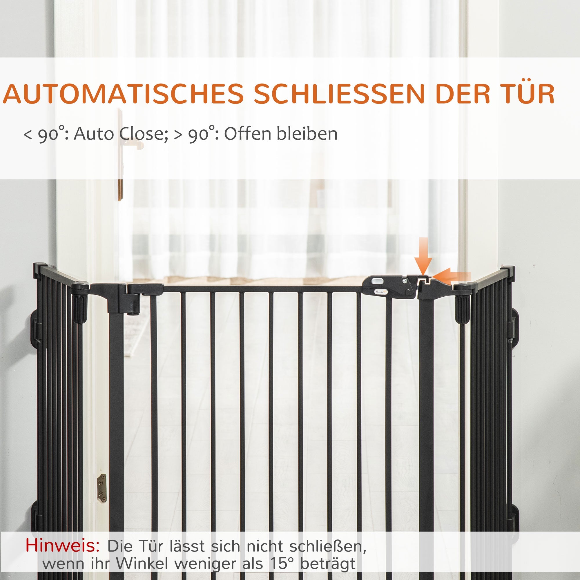 Automatic Closing Door: The door allows your pets to pass through without needing to move the entire gate. The door automatically closes when the opening angle is less than 90 degrees and remains open when it is more than 90 degrees.