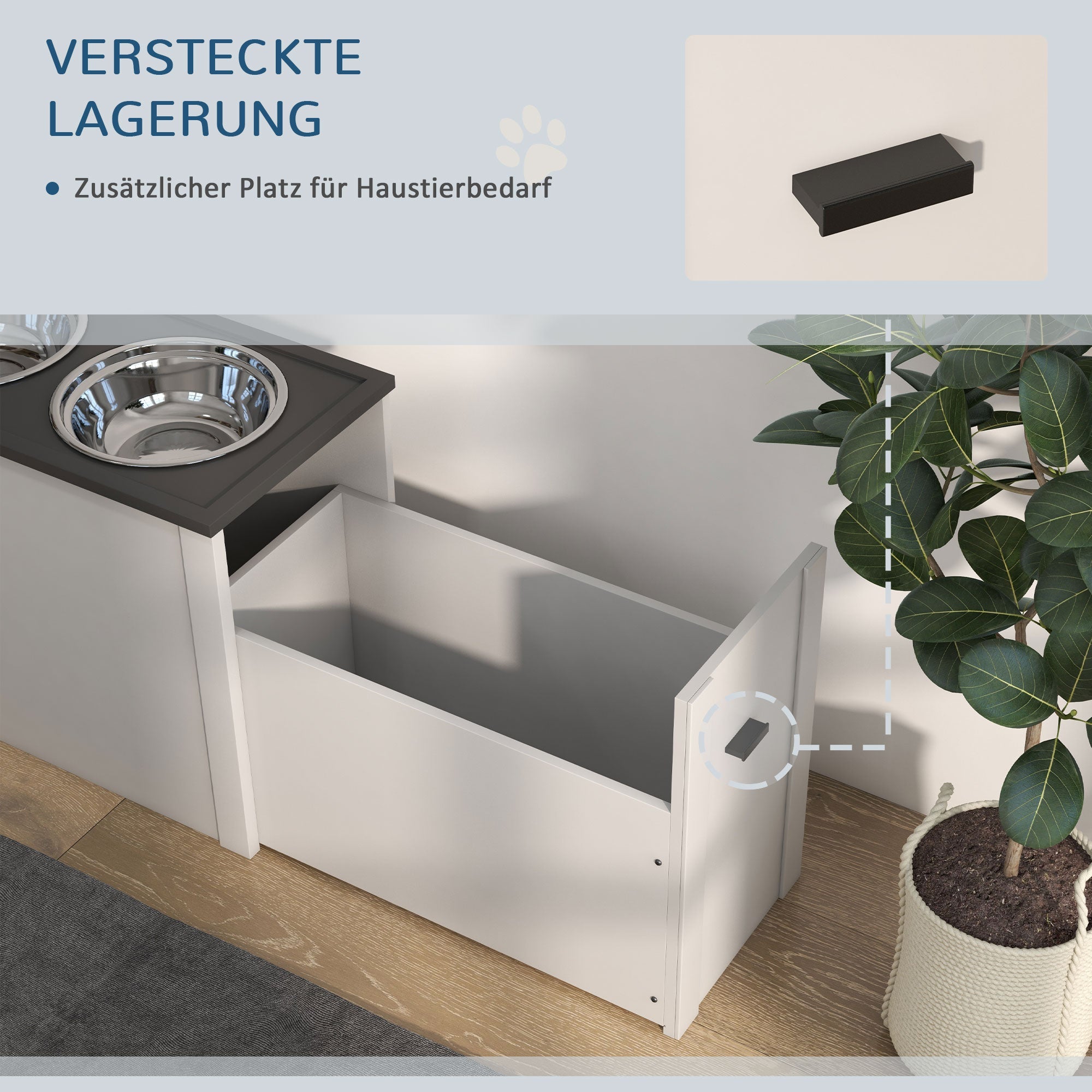 Convenient Hidden Storage: Designed with a hidden storage space for pet food, this feeding station keeps food fresh and easily accessible whenever your furry friend needs it. It eliminates the need for separate food containers and saves space in your home.