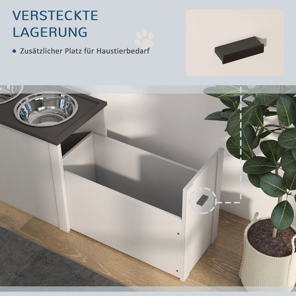 Dog Bowl, Feeding Station with Storage, 2L Stainless Steel Bowls, White