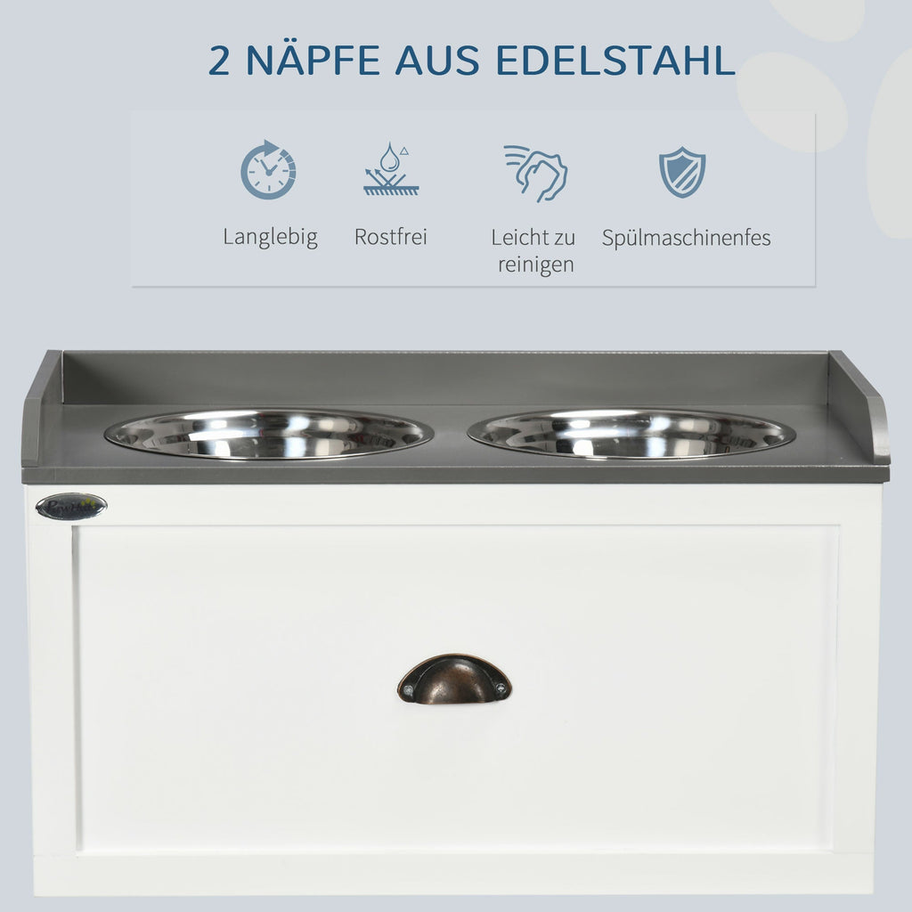 Dog Bowl with Drawer 2x2L Raised Stainless Steel Feeding Station, White
