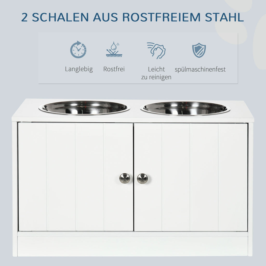 Dog Bowls, Elevated Feeding Station, 2 Stainless Steel Bowls, White