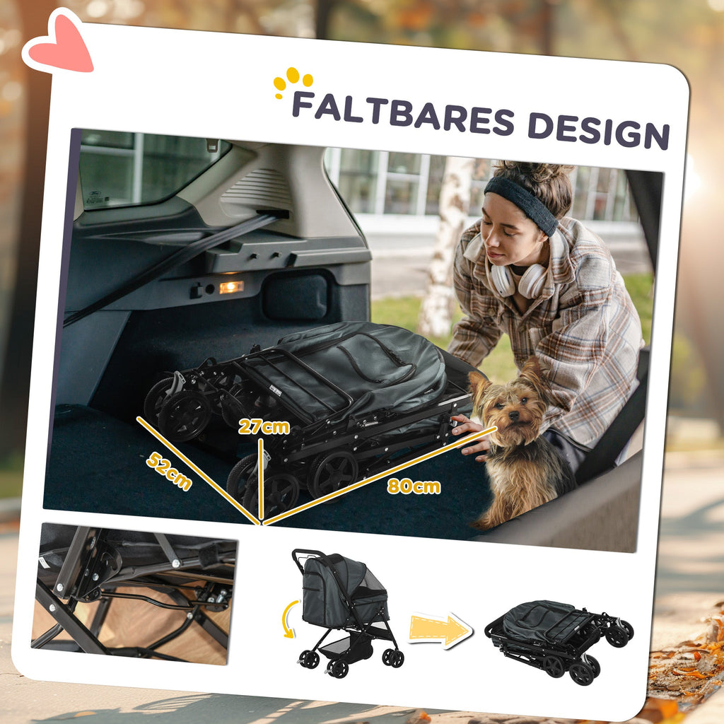 Dog Buggy, Pet Stroller for Small Dogs & Cats, Dark Grey Oxford