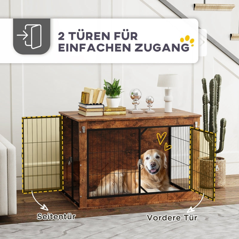 Dog Crate, 2-Door Lockable, Brown
