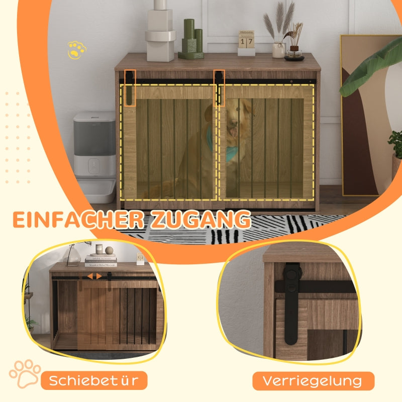 Sturdy and Secure: Made of engineered wood and steel, this dog crate table is durable, and a single sliding door with a latch ensures your dog stays safe when you're not home.