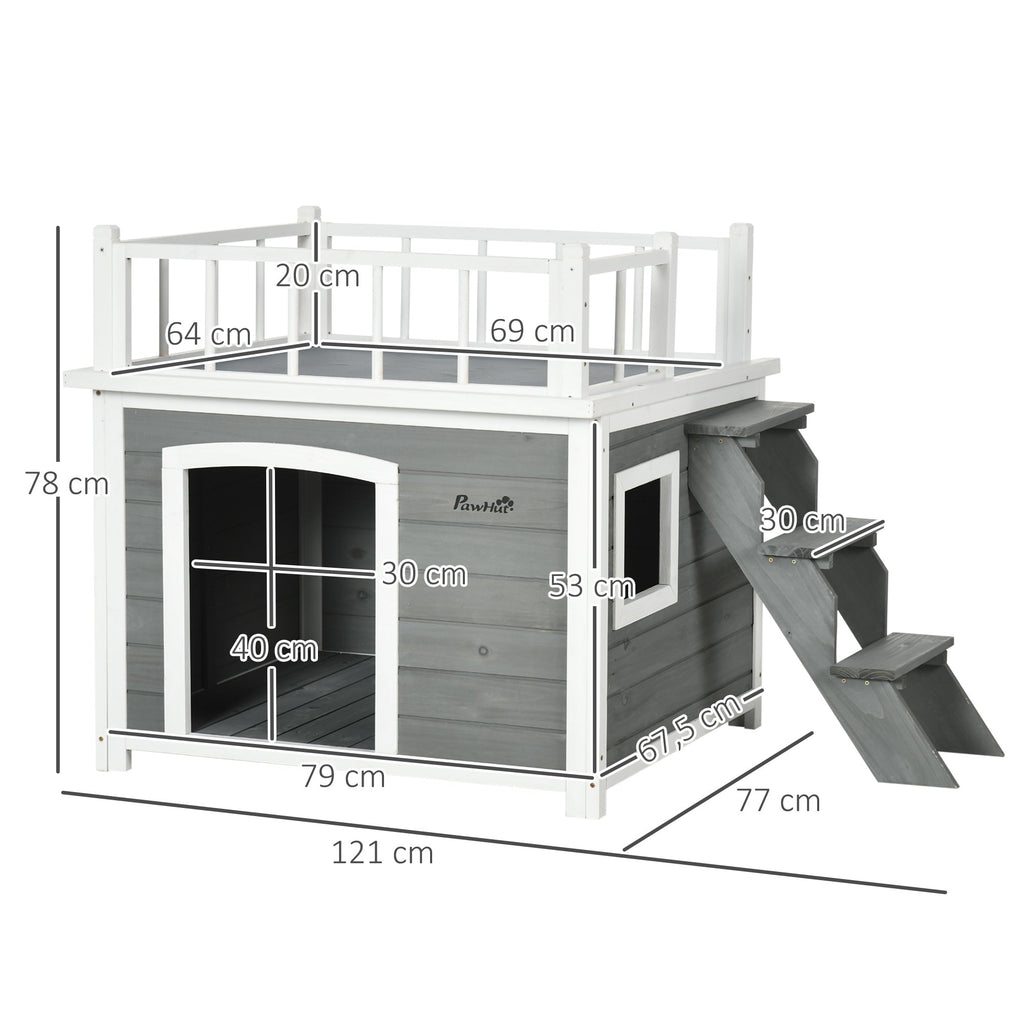 Dog House with Balcony, Stairs, Raised Window, Fir Wood
