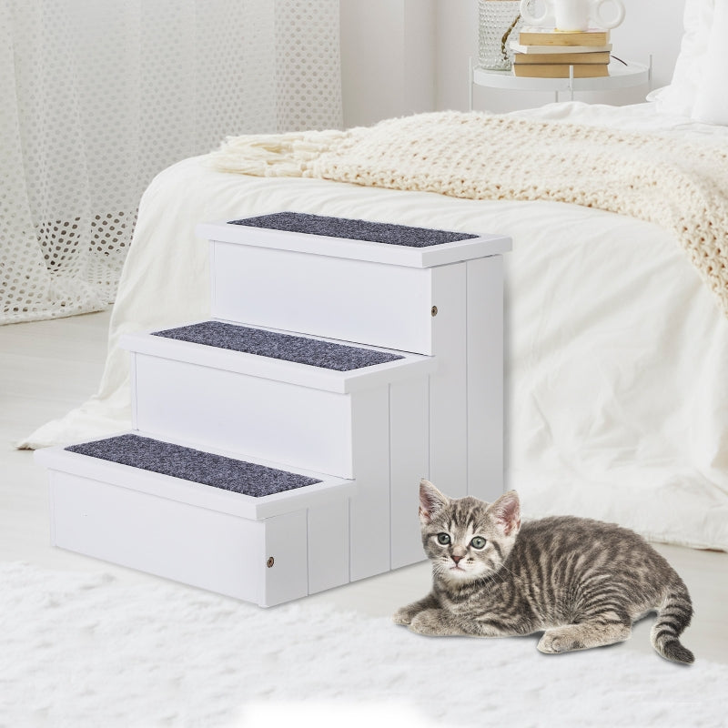 With storage space: The three-step stairs have a large interior for storing pet supplies.