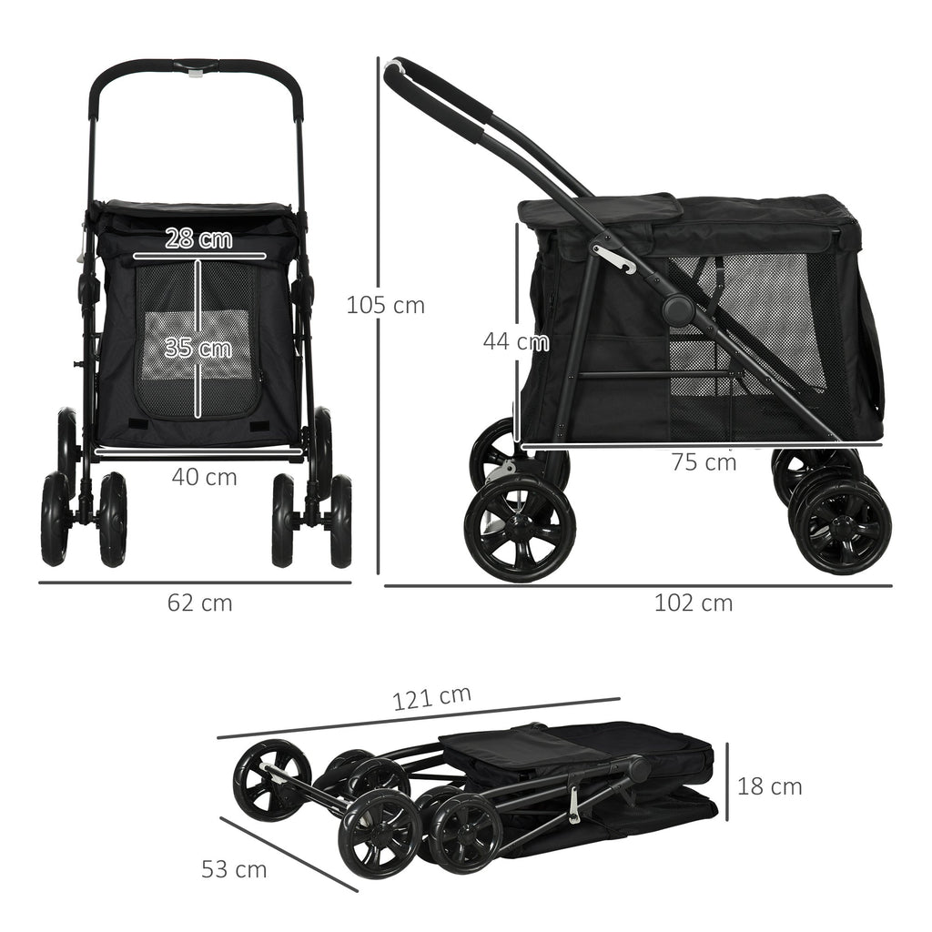 Dog Stroller, Foldable Buggy Mesh Window, Oxford Fabric Black