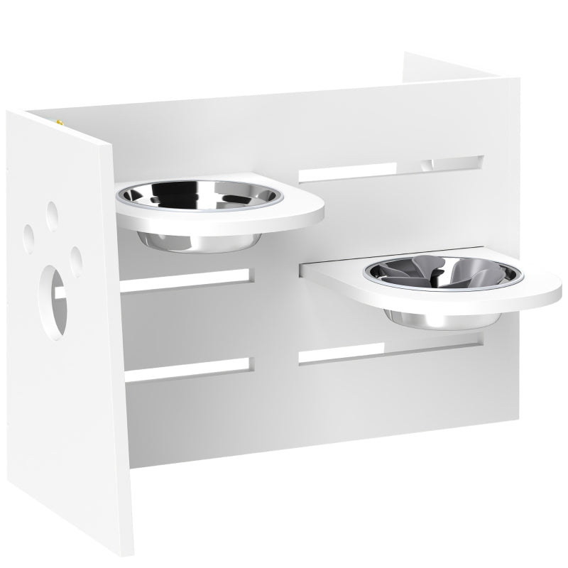 Elevated Dog Bowl, 3-Level Adjustable, 2 Stainless Steel Bowls, White