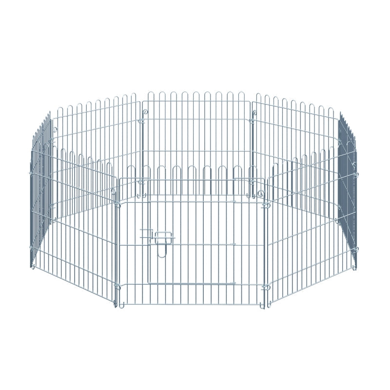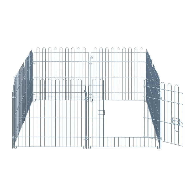 Sufficient Play Area: The playpen offers young animals a safe and spacious play area. The sturdy metal panels are easy to connect and secure in the ground with the included anchor hooks.