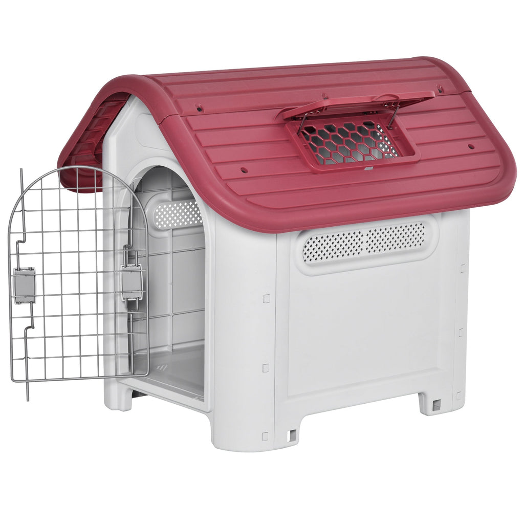 Outdoor Dog Kennel with Roof Hatch, Gate, Air Circulation, Red