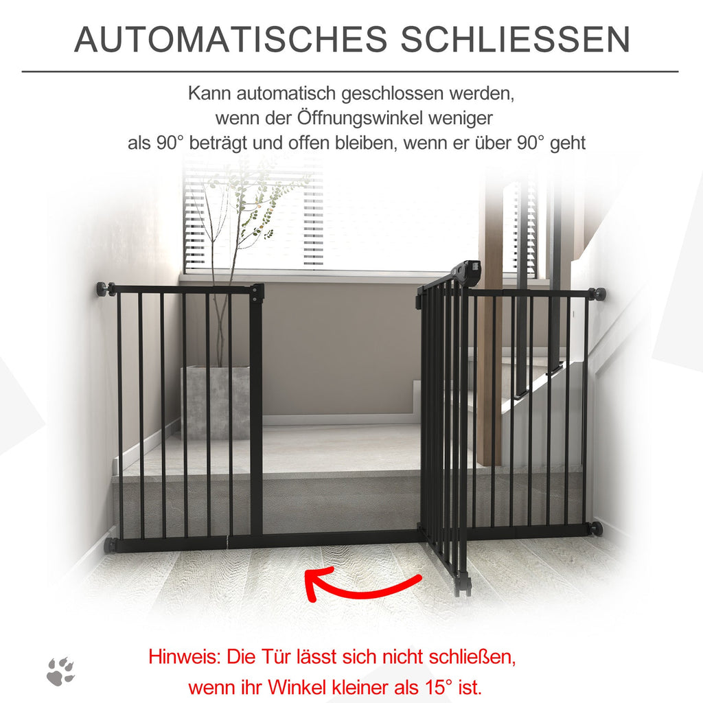 Smart Design: If the opening angle of the pet gate is less than 90 degrees, the door closes automatically when you release it. If the opening angle is greater than 90 degrees (the door will not close if its angle is less than 15 degrees), the door stays open for added convenience.