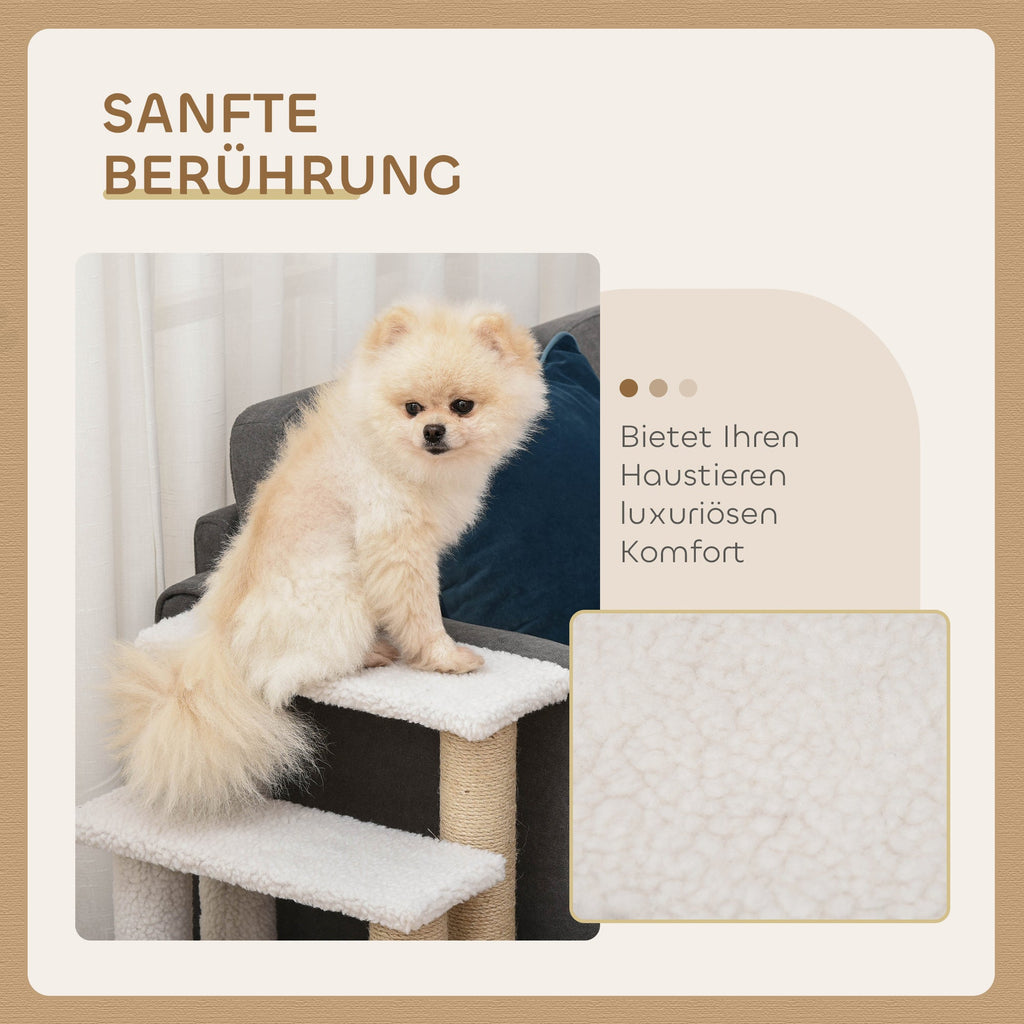 Pet Stairs, 4-Step with Scratching Post, Chipboard Plush Jute, White