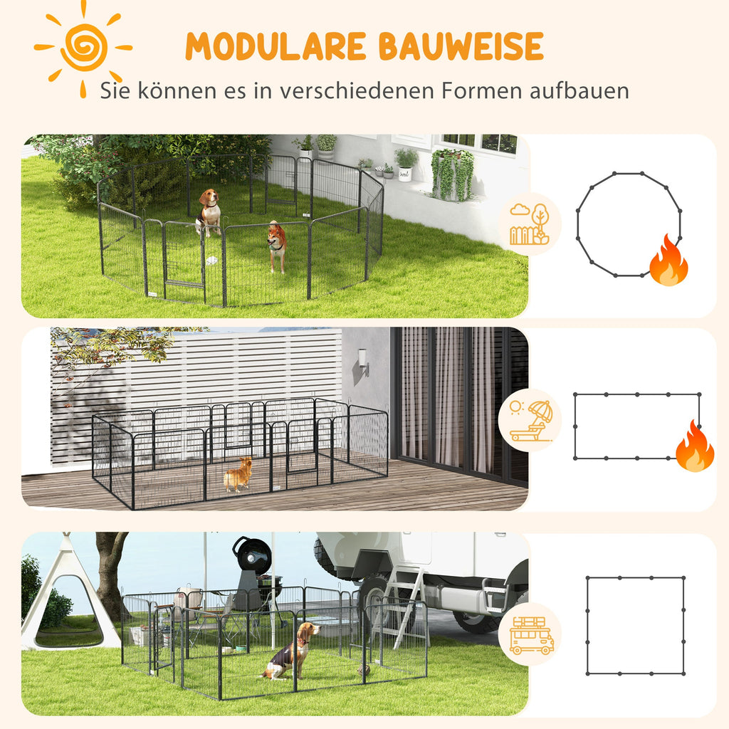 Puppy Playpen 12-Piece, 80cm High, Steel, Gray