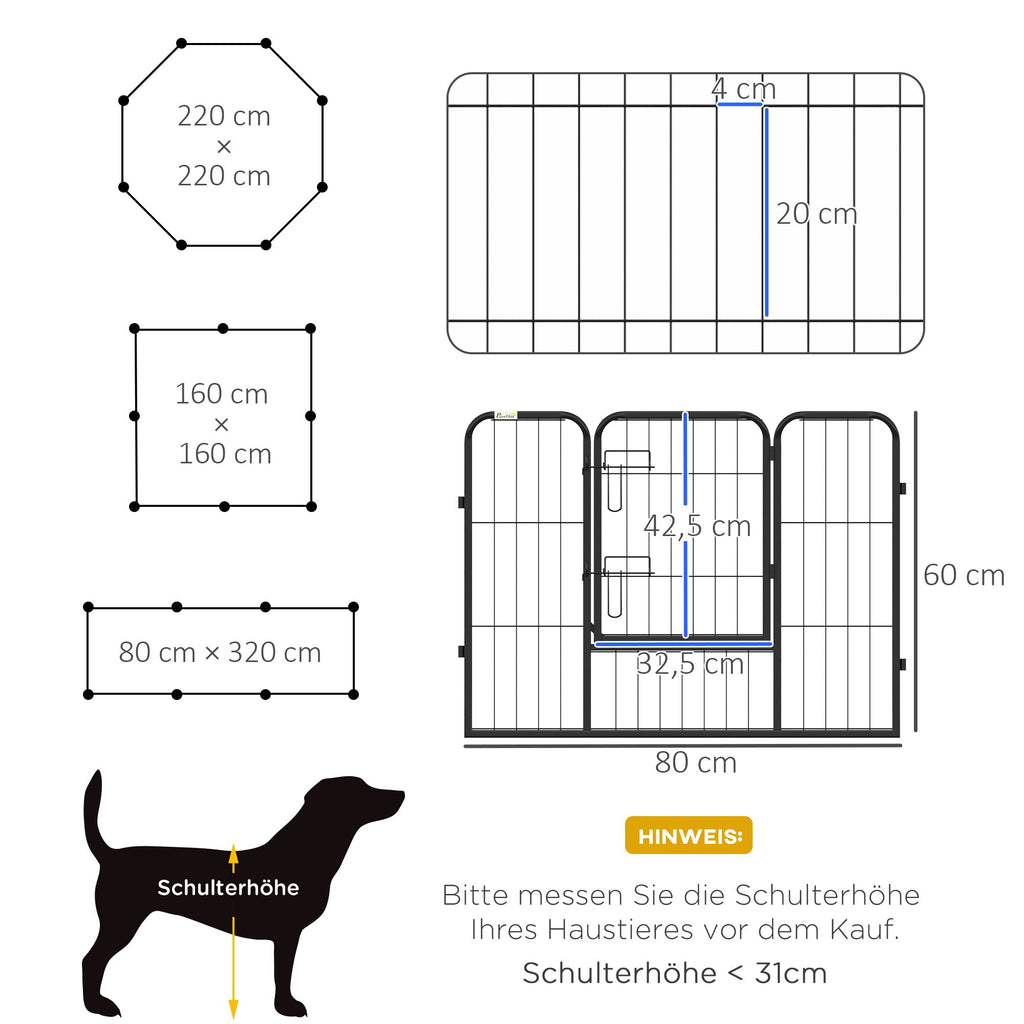 Puppy Run 8 Panel Outdoor Playpen with Door, Metal