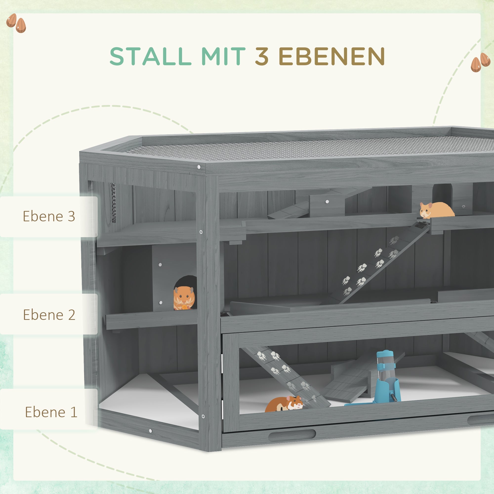 Rodent Cage, 3-Tier Hexagonal with Ramp, Wood Gray
