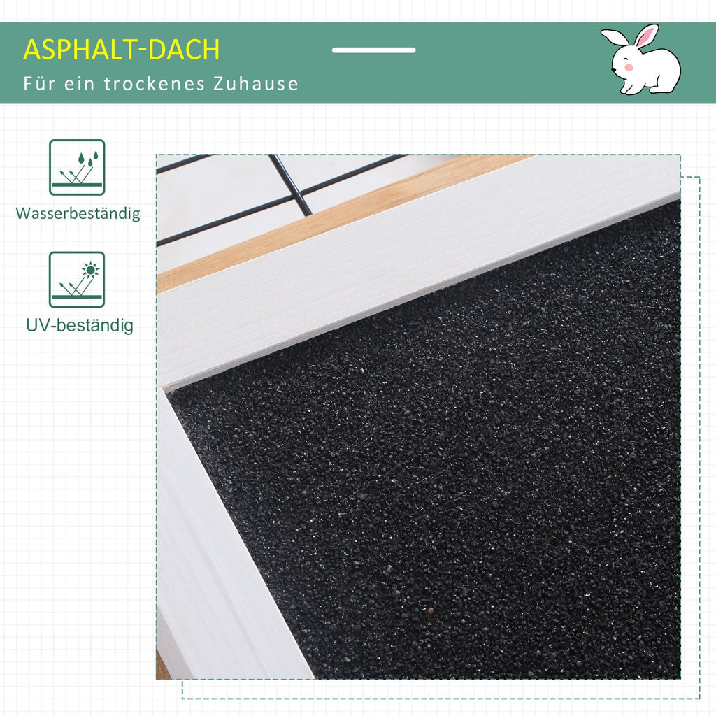 The hutch frame is made of durable, weather-resistant wood, and the house has a waterproof asphalt roof, protecting your rabbit from wind and weather.