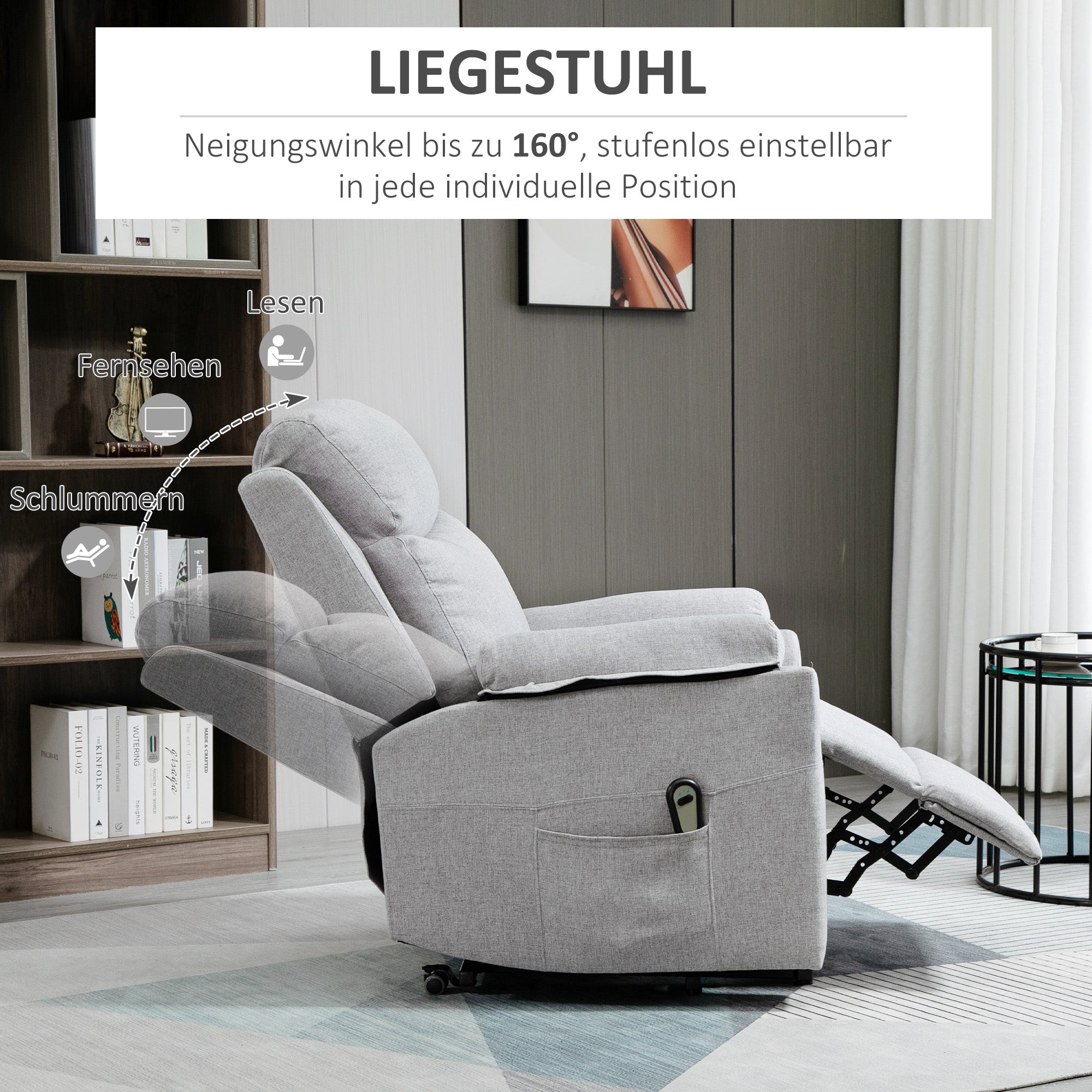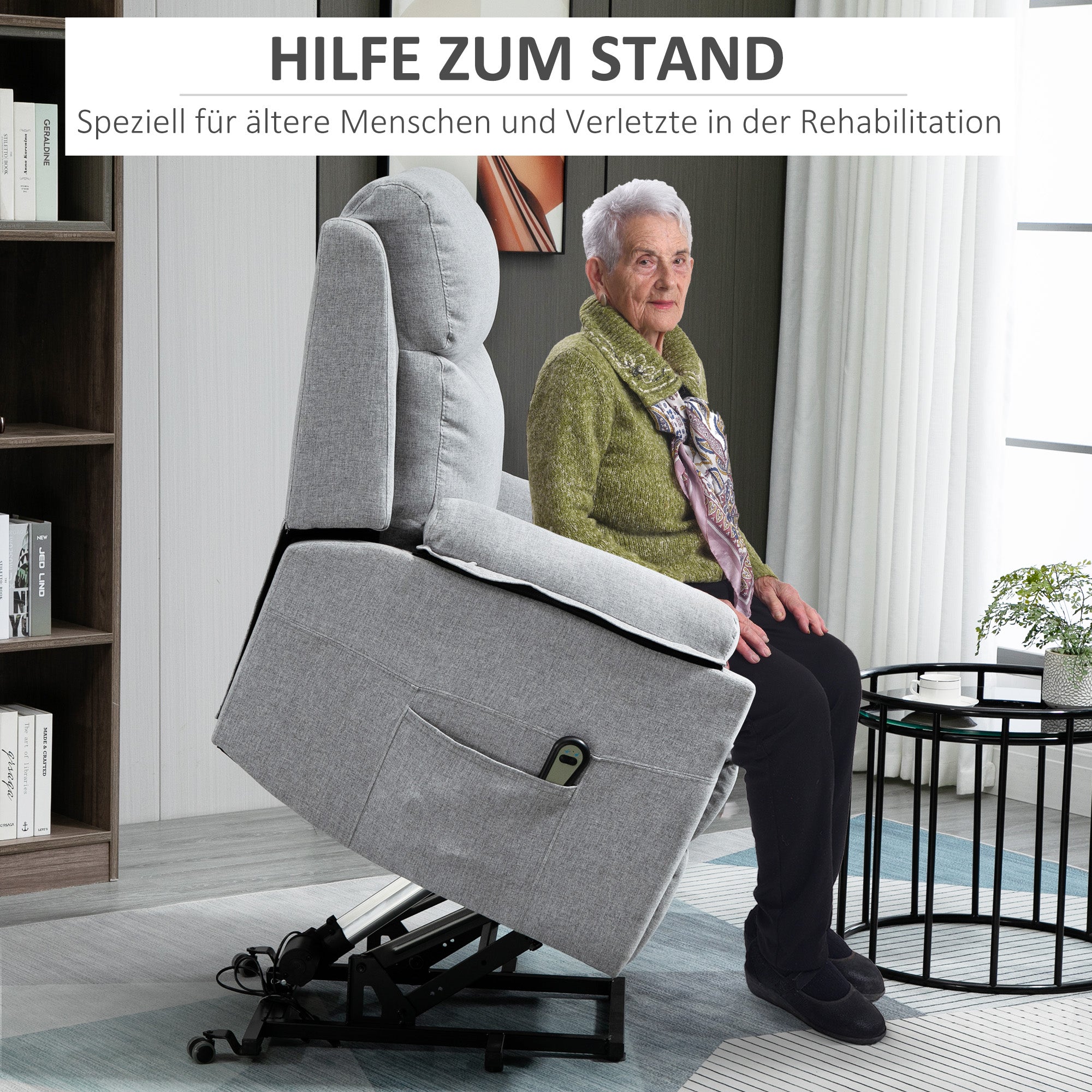 Electric TV Recliner with Lift Assistance, 1 Motor, Side Pocket, Gray Fabric