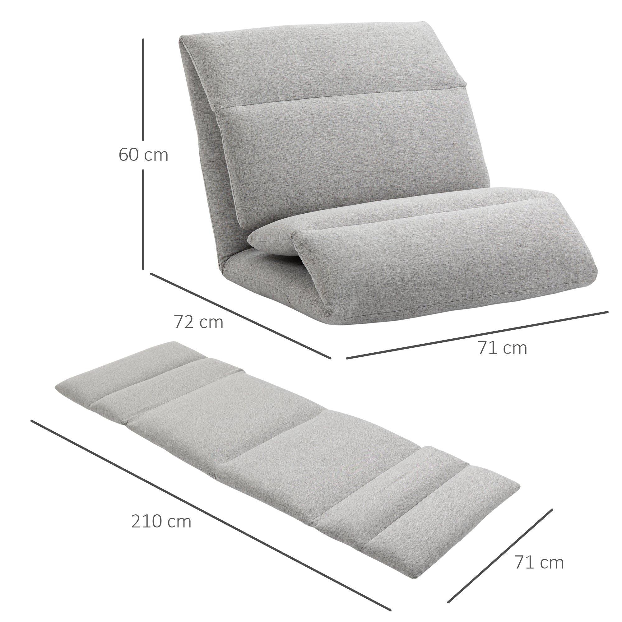 Product Specifications: Overall dimensions: 72W x 71D x 60H cm (sofa), 210W x 71D x 7.5H cm (bed). Maximum load: 120 kg. No assembly required.