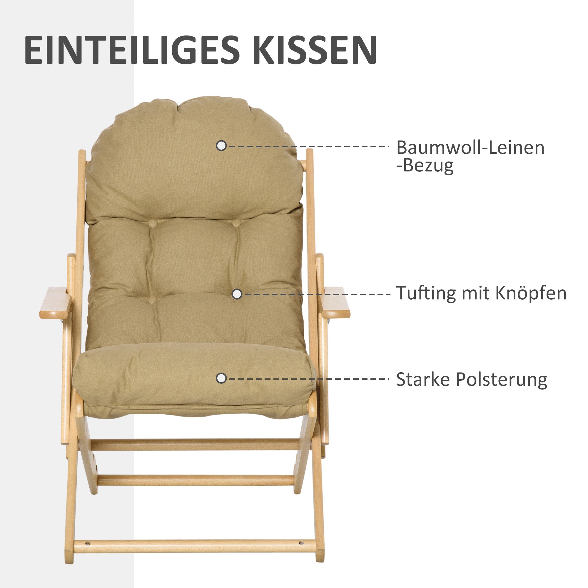 Reclining Armchair, Folding Upholstered Lounge Chair, Beech Wood, Brown