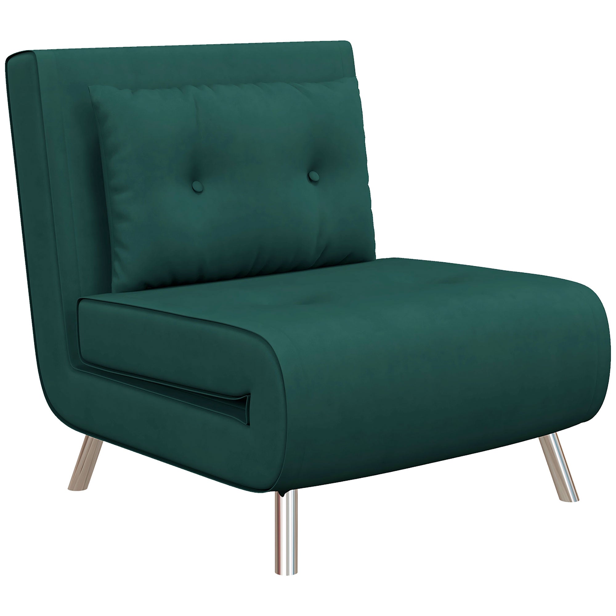 Sleeper Chair Folding Single Sofa Bed, Upholstered Velvet Look, Dark Green