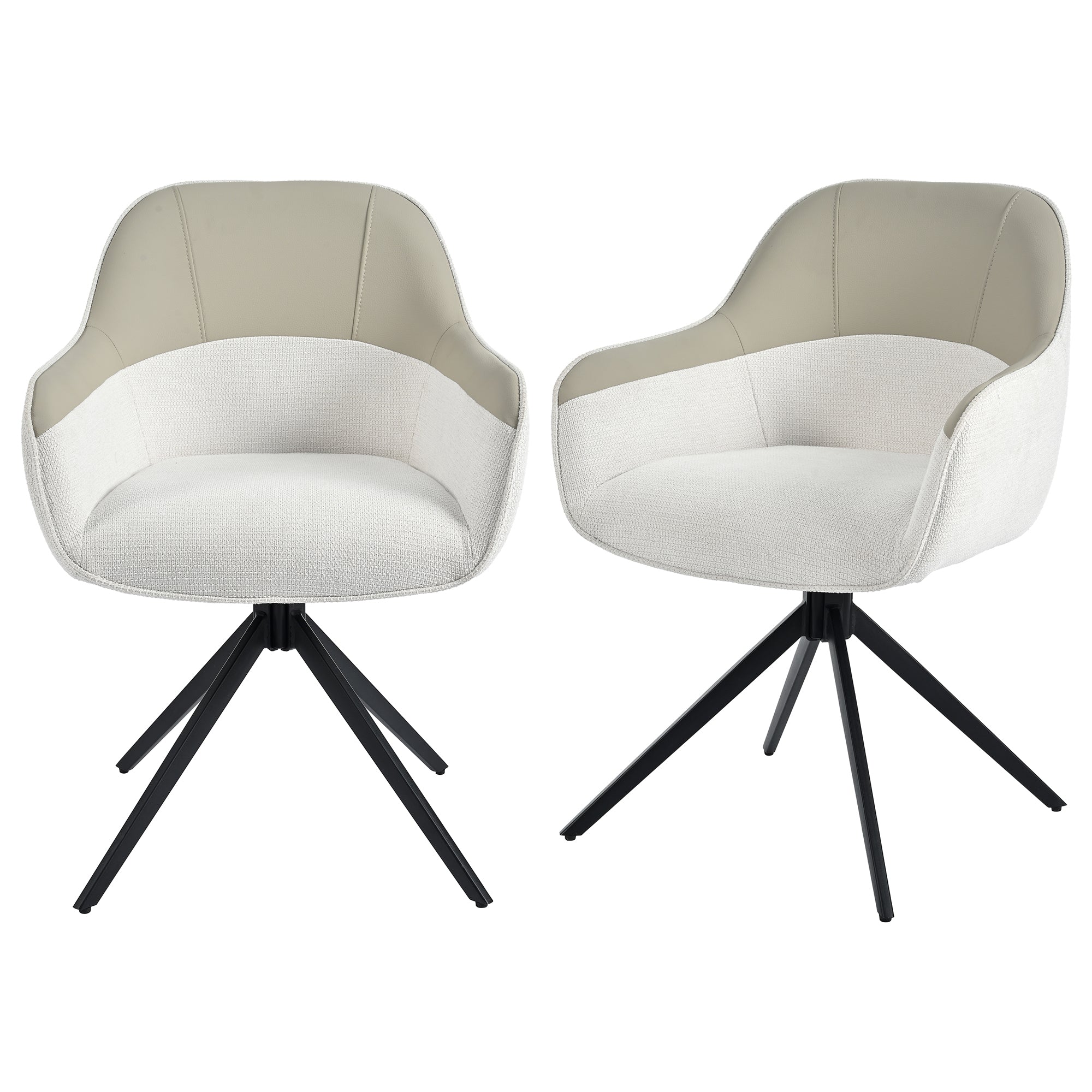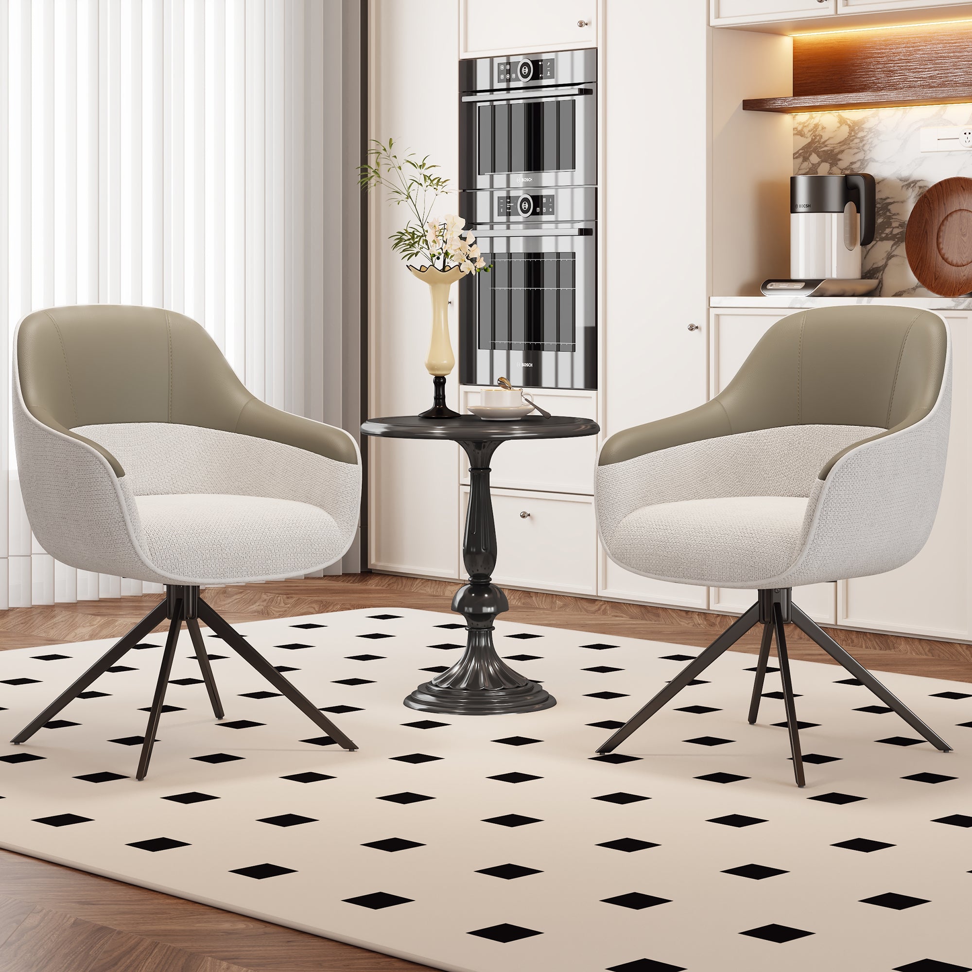 2 Swivel Dining Chairs, Faux Leather & Fabric, Height-Adjustable, Beige