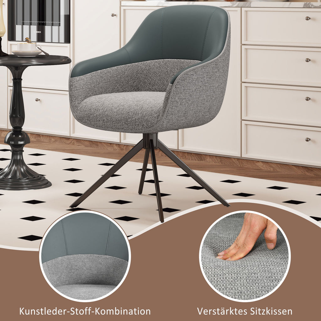 2 Swivel Dining Chairs, Upholstered with Adjustable Feet, Beige/Grey