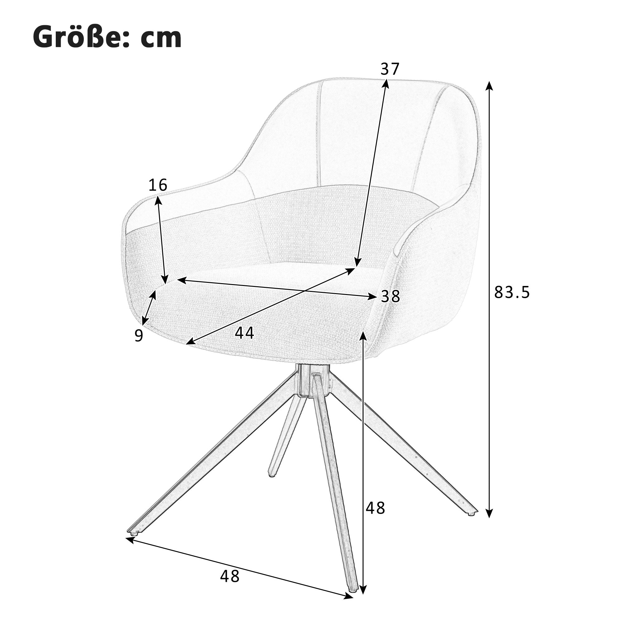 Seat Dimensions: 38 × 44 cm (Width/Depth)