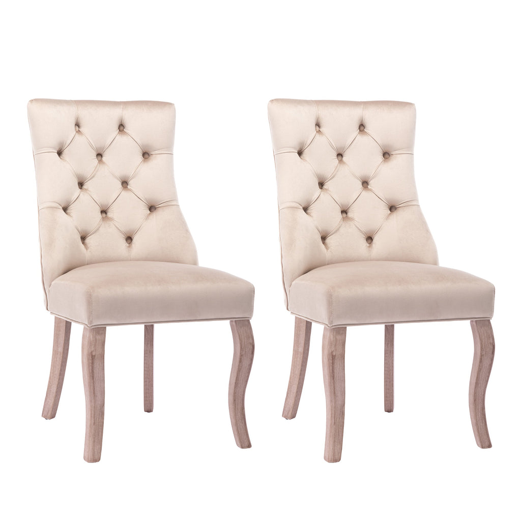 4-legged Dining Chair, High Backrest, Button Stitching, Solid Wood Frame, Beige Velvet (Set of 2)