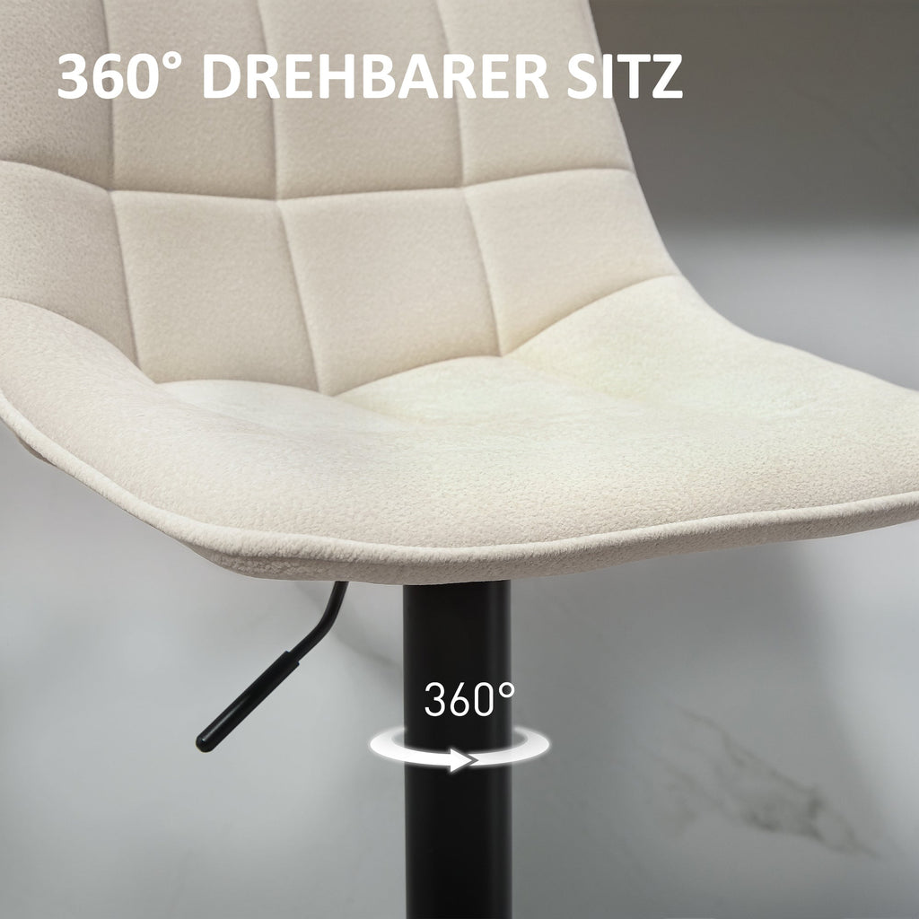 Bar Stool Set of 2, Upholstered with Backrest, Height-Adjustable, Swivel, Beige