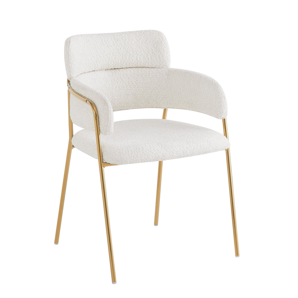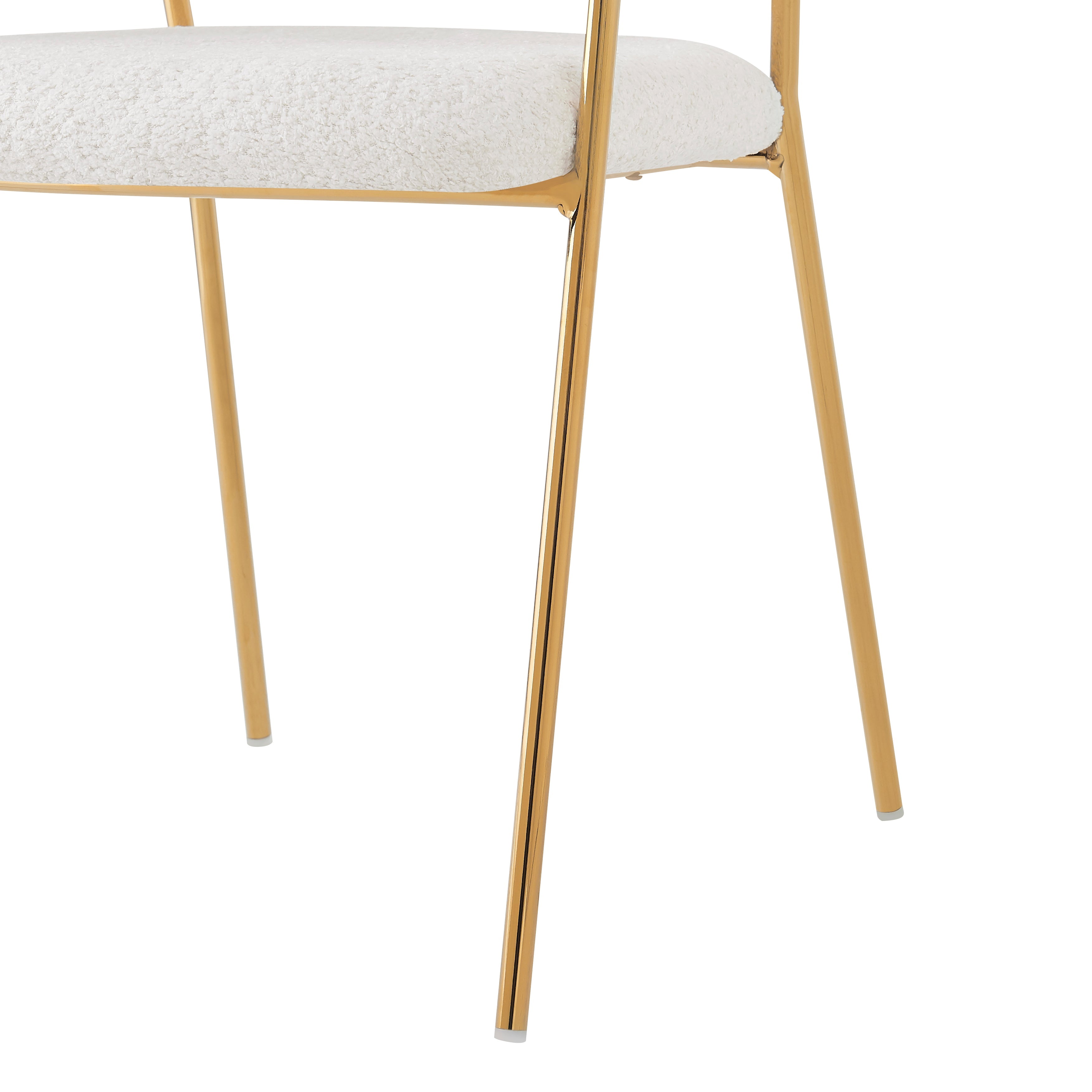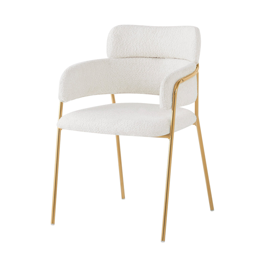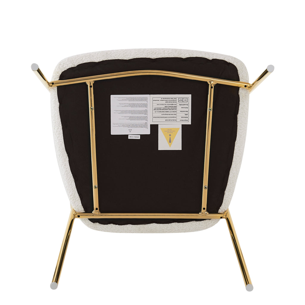 This chair features a white seat and elegant gold legs, offering a simple yet luxurious design. The soft white seat provides excellent support and comfort, ideal for extended sitting. The golden legs add a touch of sophistication, making the overall design more elegant and attractive. Whether placed in the living room, dining room, or office, this chair is sure to be a captivating focal point. Its clean, modern design instantly conveys both beauty and comfort. For daily use or special occasions, this chair is an exceptional choice.