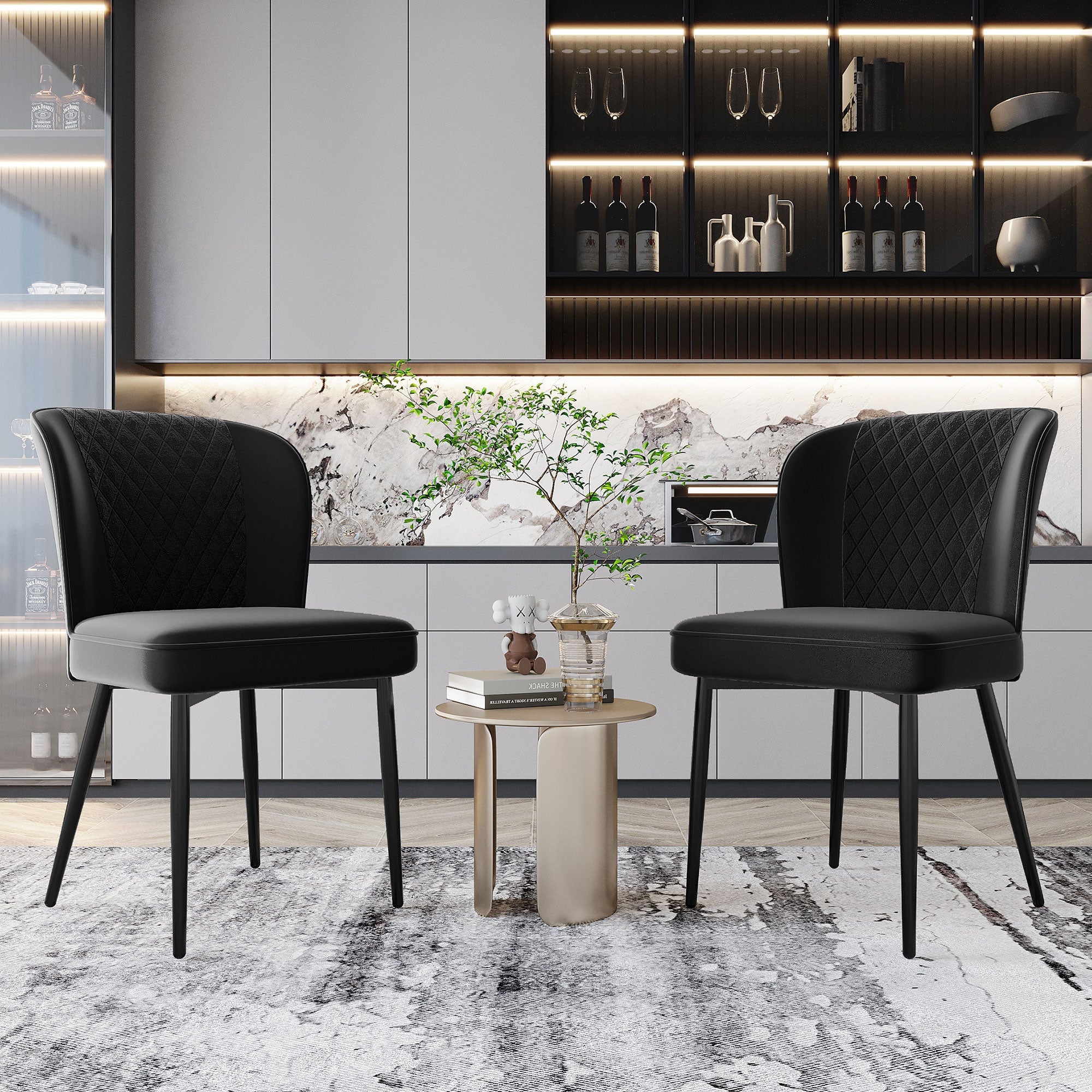 Dining Chair (2 pcs), Upholstered Velvet with Metal Frame, Black