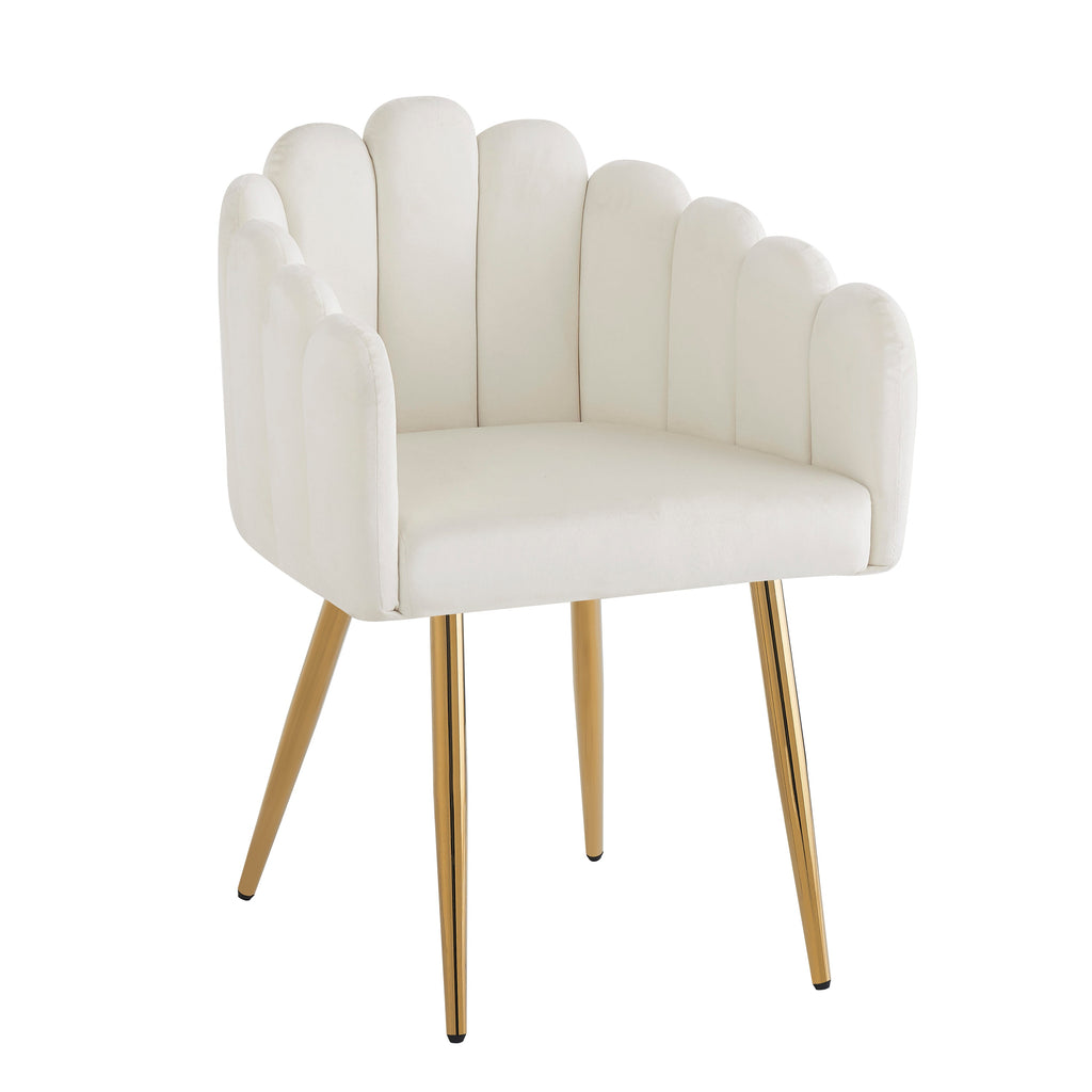 Dining Chair (2 Pcs) with Electroplated Gold Iron Legs, Fan-Shaped Design, High-Quality Velour Fabric