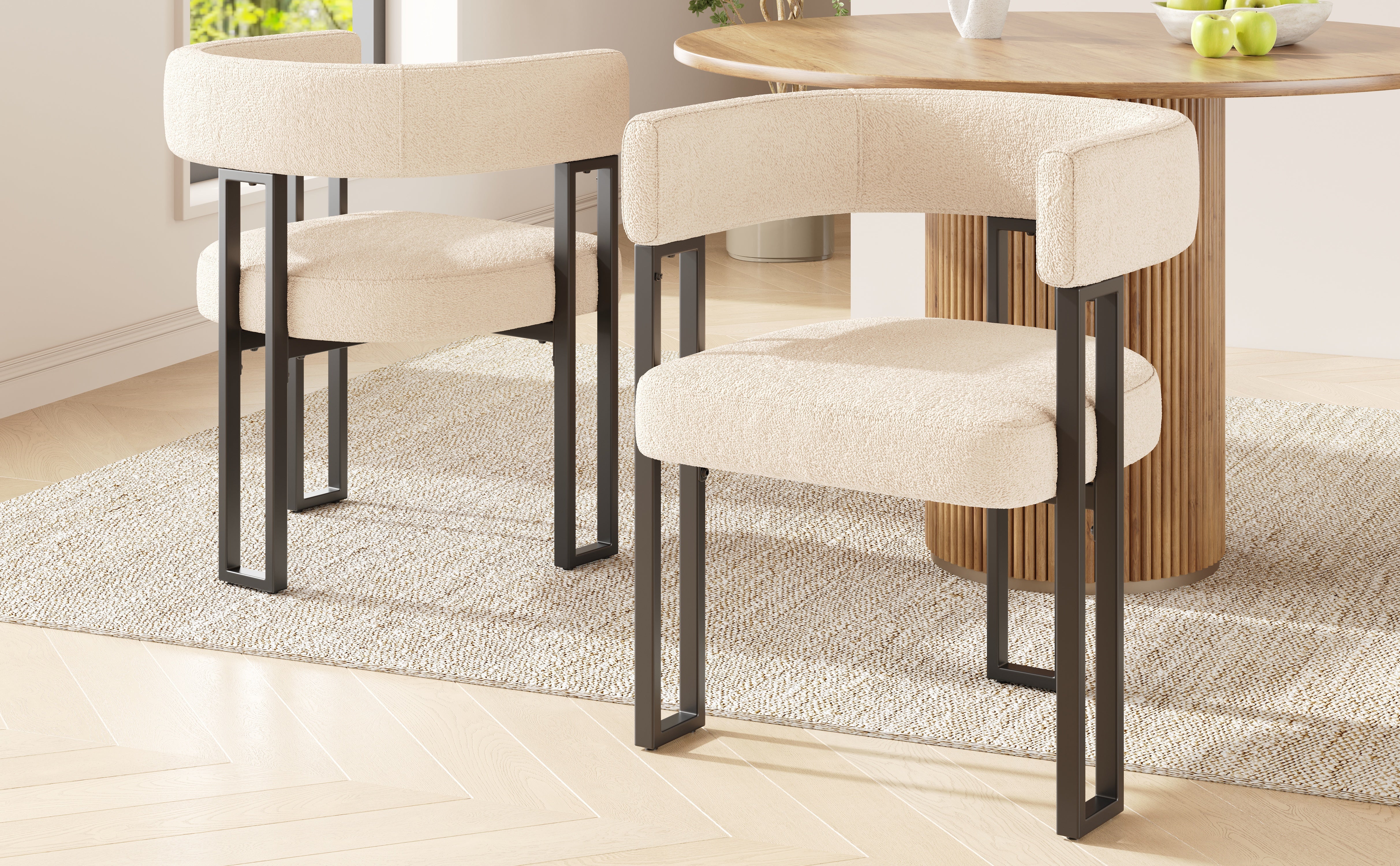Dining Chair 2-Piece Set, Ergonomic Luxury with Curved Backrest, Beige Fabric