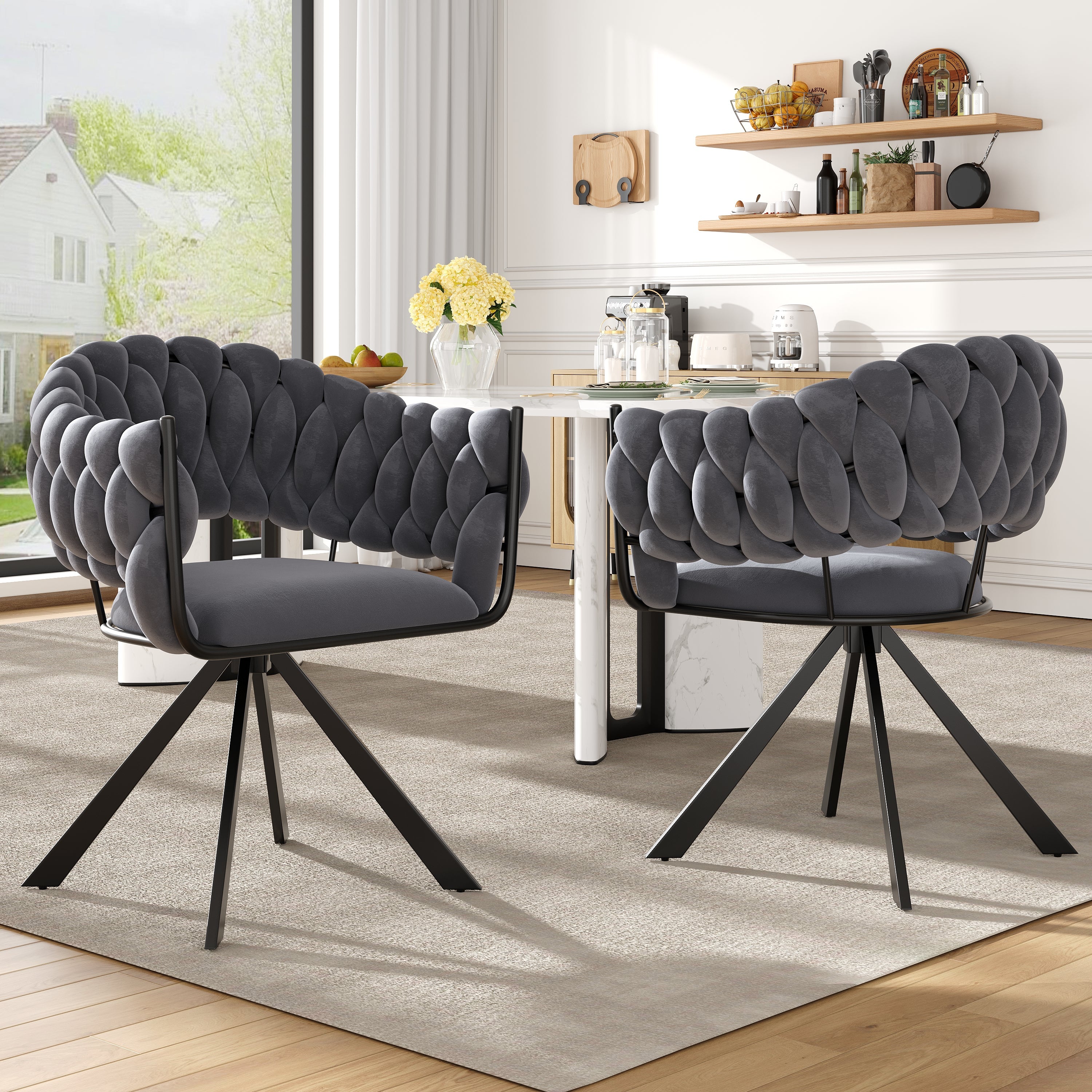 Dining Chair (2 Pieces) - Ergonomic, Claw-Shaped Metal Legs, Gray Velvet