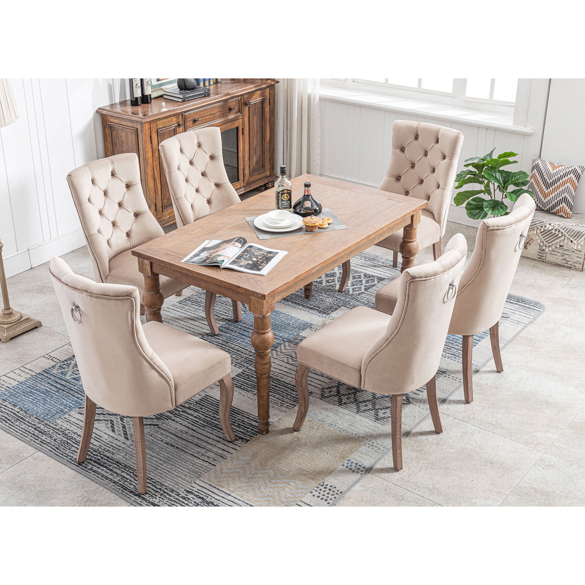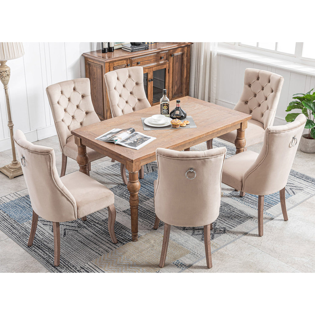 Dining Chair, 4-Legged High Back with Button Stitching (Set of 6), Beige Velvet
