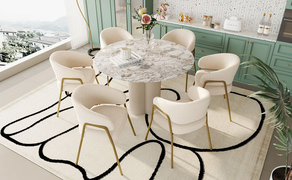 High-quality Materials: This dining chair is made of soft white sheepskin with fine down, offering a charming appearance, excellent breathability, and comfort. You'll experience a seductive seating experience that will make your dining experience even more enjoyable.