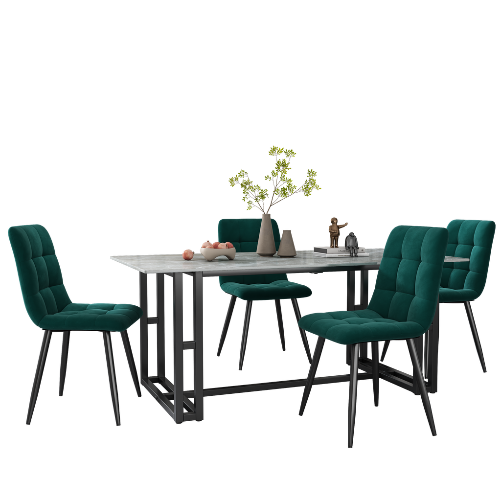 Dining Chair Set (4 pcs) - Upholstered Design with Backrest, Velvet Seat, Metal Frame, Dark Green