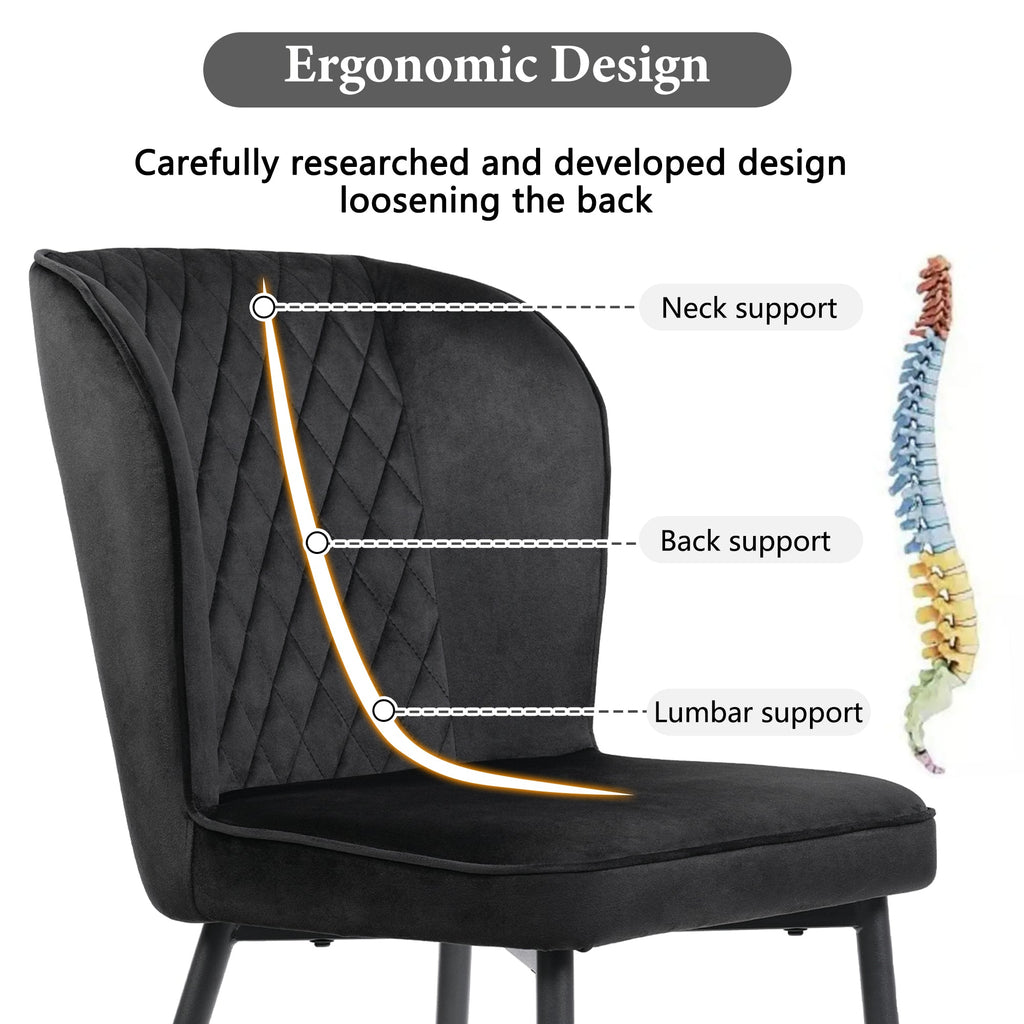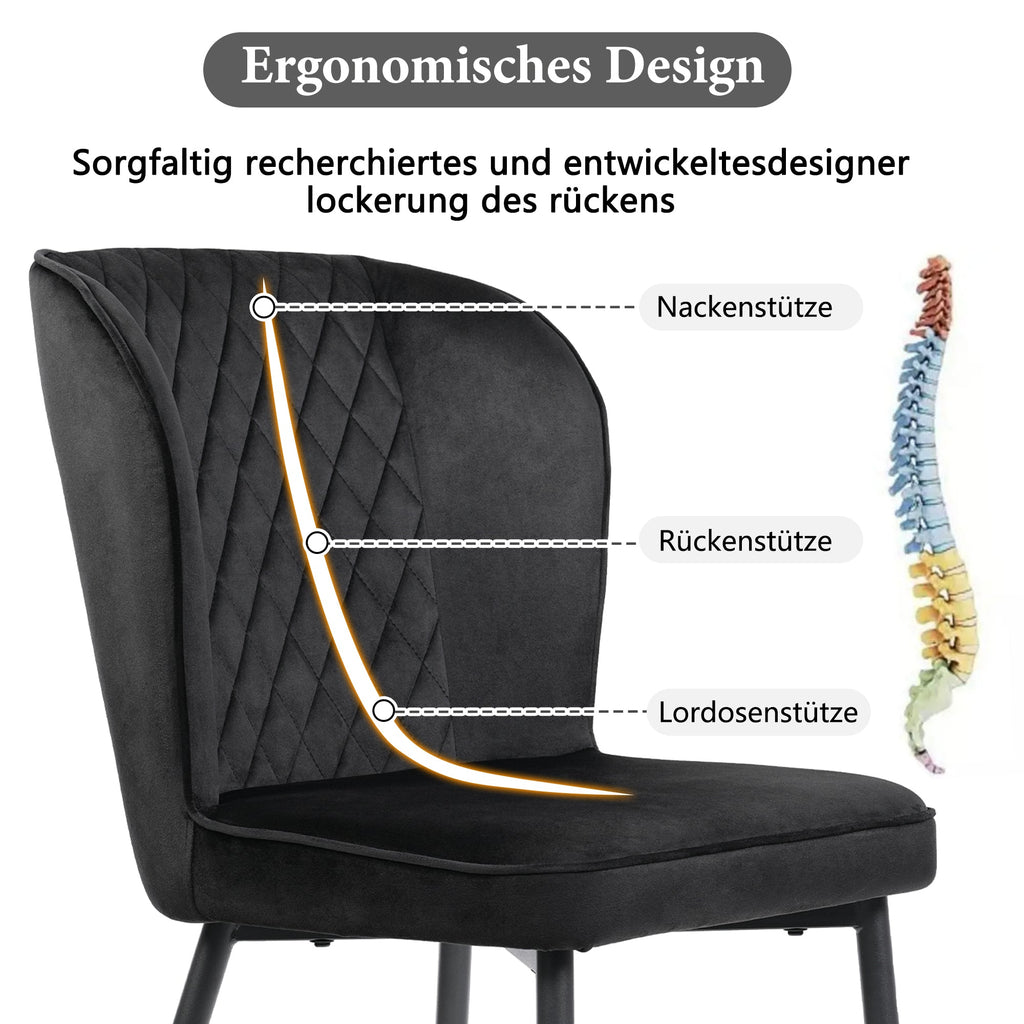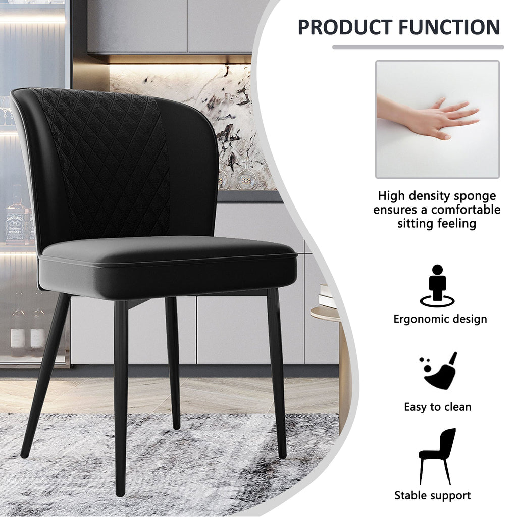 Dining Chair Set (4 pcs), Upholstered with Backrest, Black Velvet & Metal