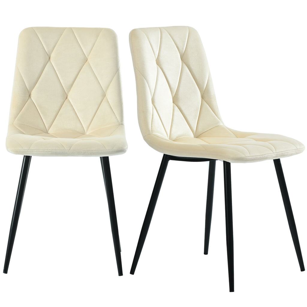 Dining Chair Set (4), Upholstered Twill Velvet with Metal Legs, Beige