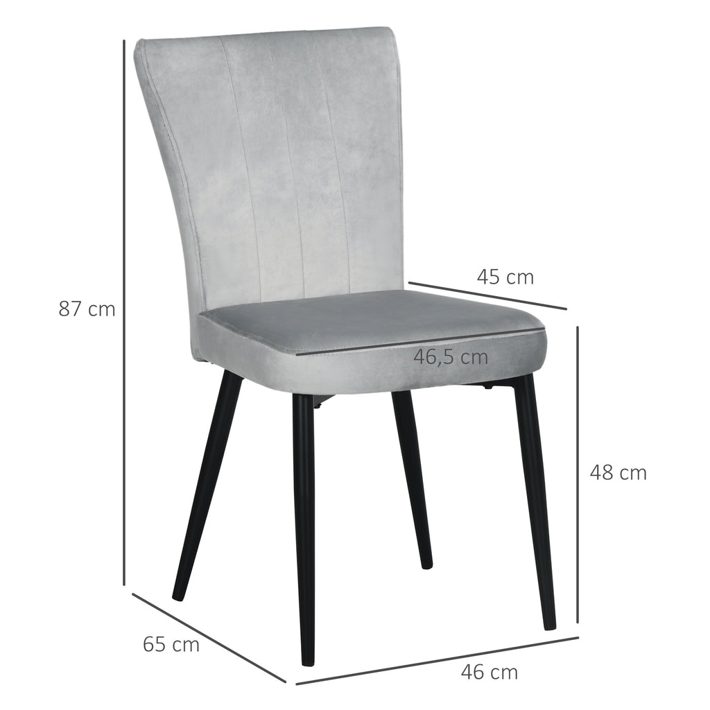 Dining Chair Set of 4, Kitchen Chairs, Backrest, Grey Velvet