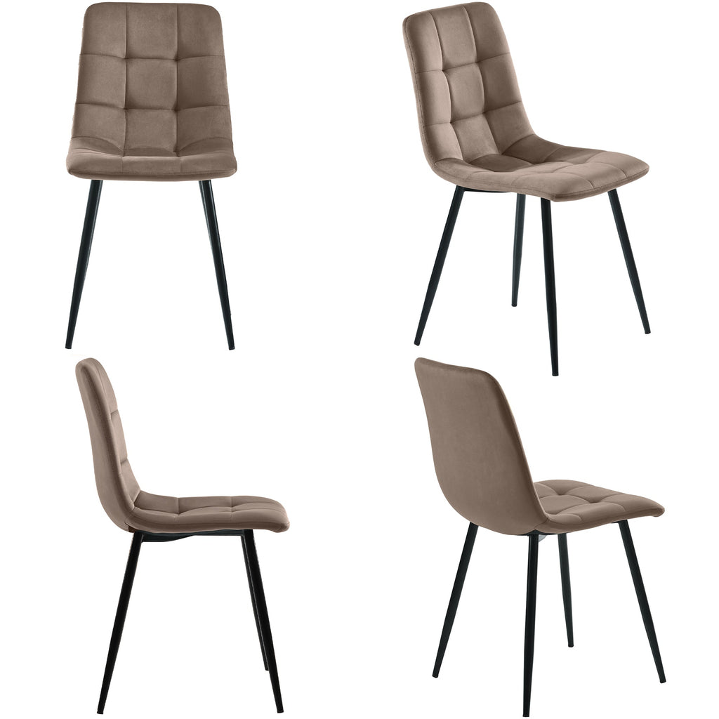Dining Chair (Set of 4), Upholstered Design with Backrest, Brown Velvet and Metal